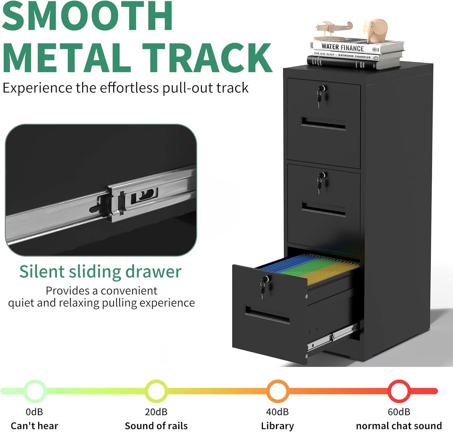 - 【Smooth Slide Rail】Each drawer of the steel cabinet is equipped with two sturdy ball-bearing slides, ensuring smooth opening and closing without jamming or derailing. This allows for easy access to your documents and guarantees a seamless user experience.