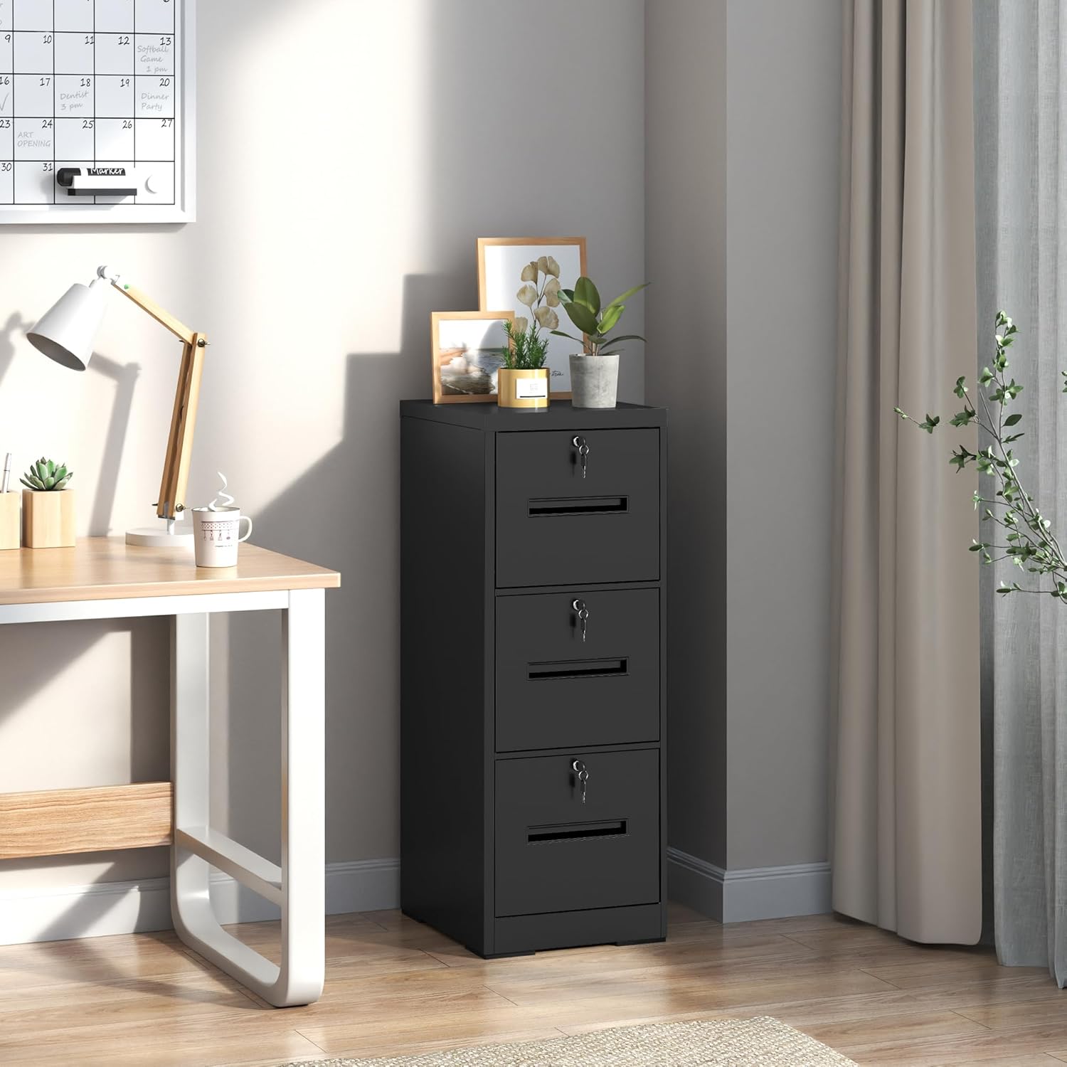 - 【Locking Filing Cabinet】This file cabinet 3 drawer with a lock fits most desks. Each drawer comes with its own lock to protect your documents, adding an extra layer of security for your home or office. Every drawer features a labeled slot for easy identification and organized storage.