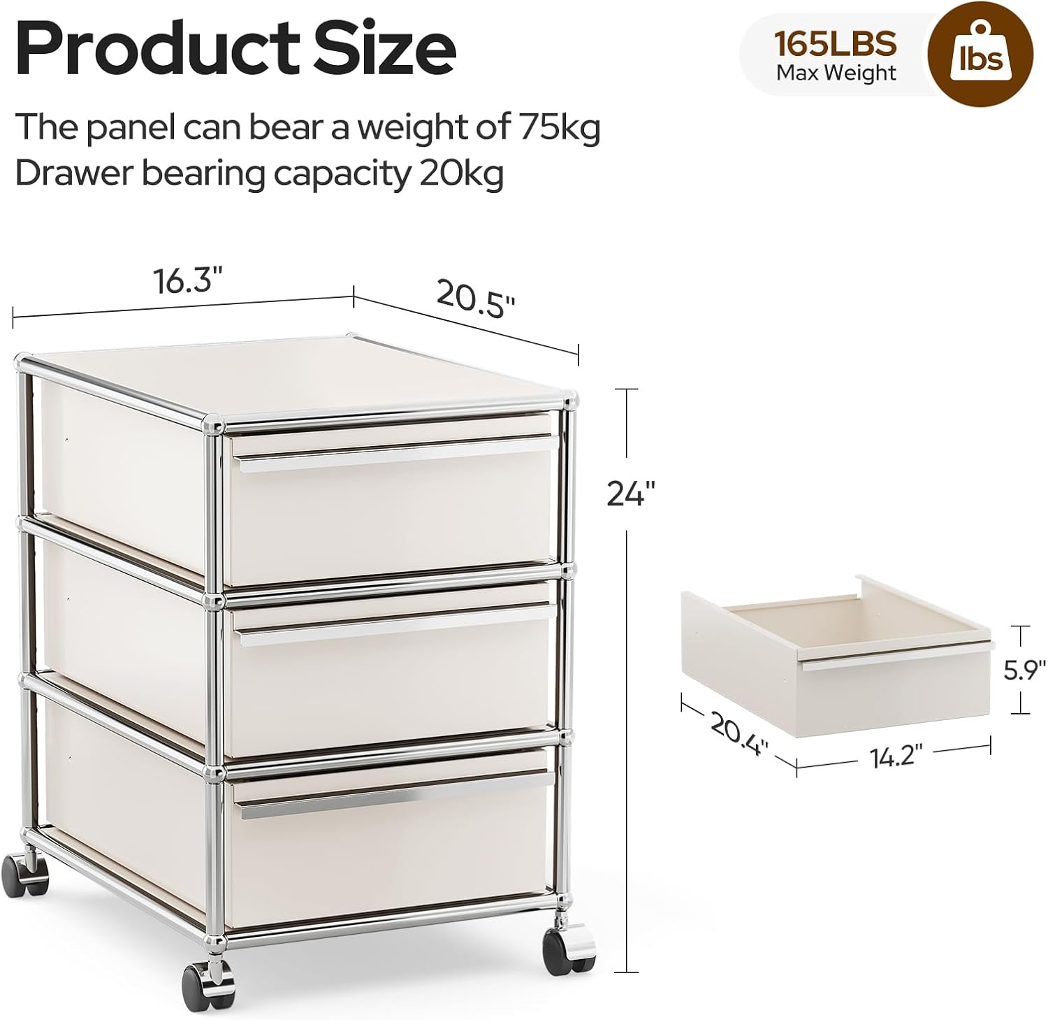 Steel Mobile File Cabinet for Office & Home with 360° Silent Wheels, Smooth Drawer Slides, Large Capacity, Waterproof and Rust-Proof, Stylish & Durable Storage Cabinet (3 Drawer, White)