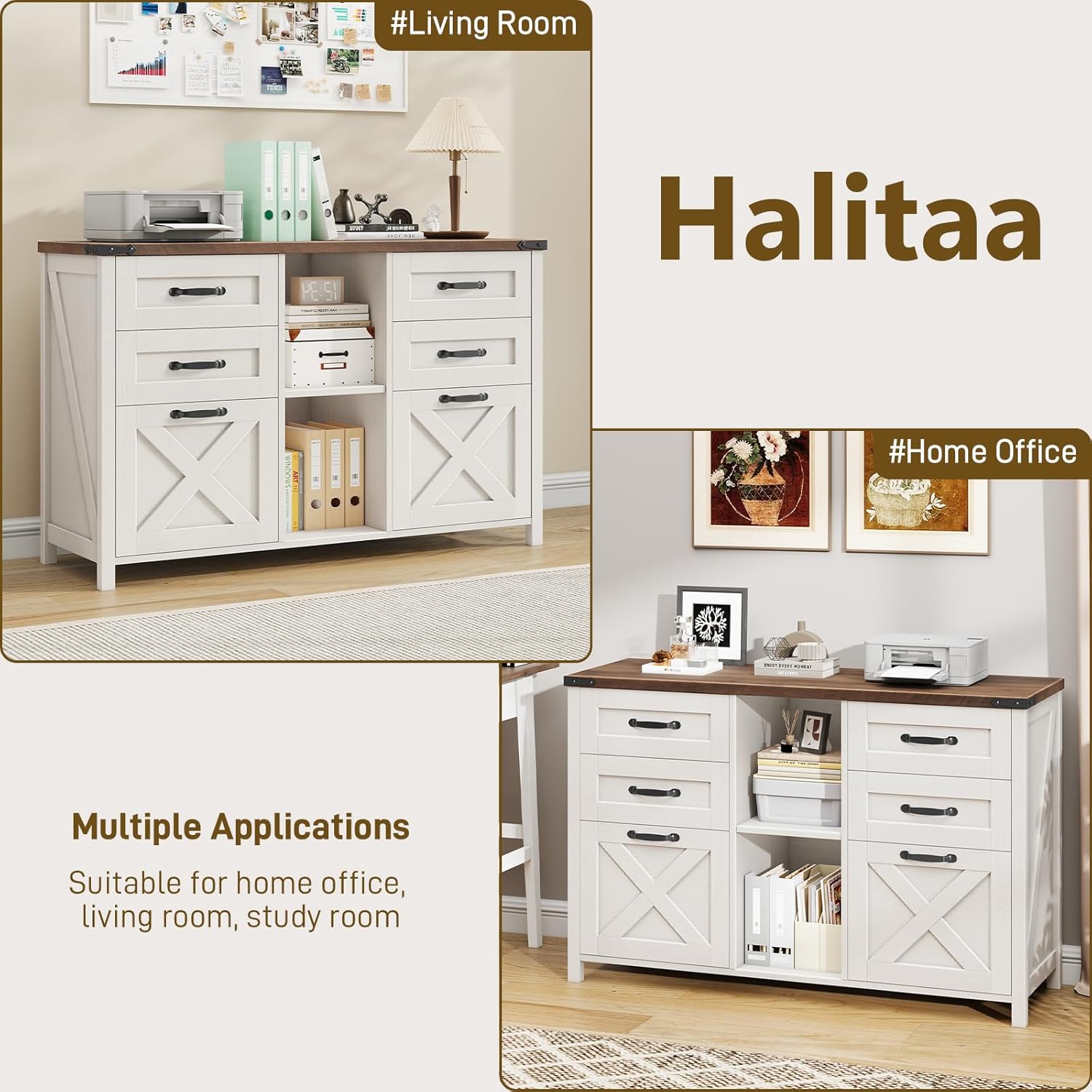 - 🖨️【Versatile File Cabinet】Halitaa lateral file cabinet not only can it be used to hang files to keep your documents organized. 📁It can also be used as a vanity or large nightstand for home supplies. And 43.4"W x 13.9"D large desktop is perfect for printers, scanners, etc.