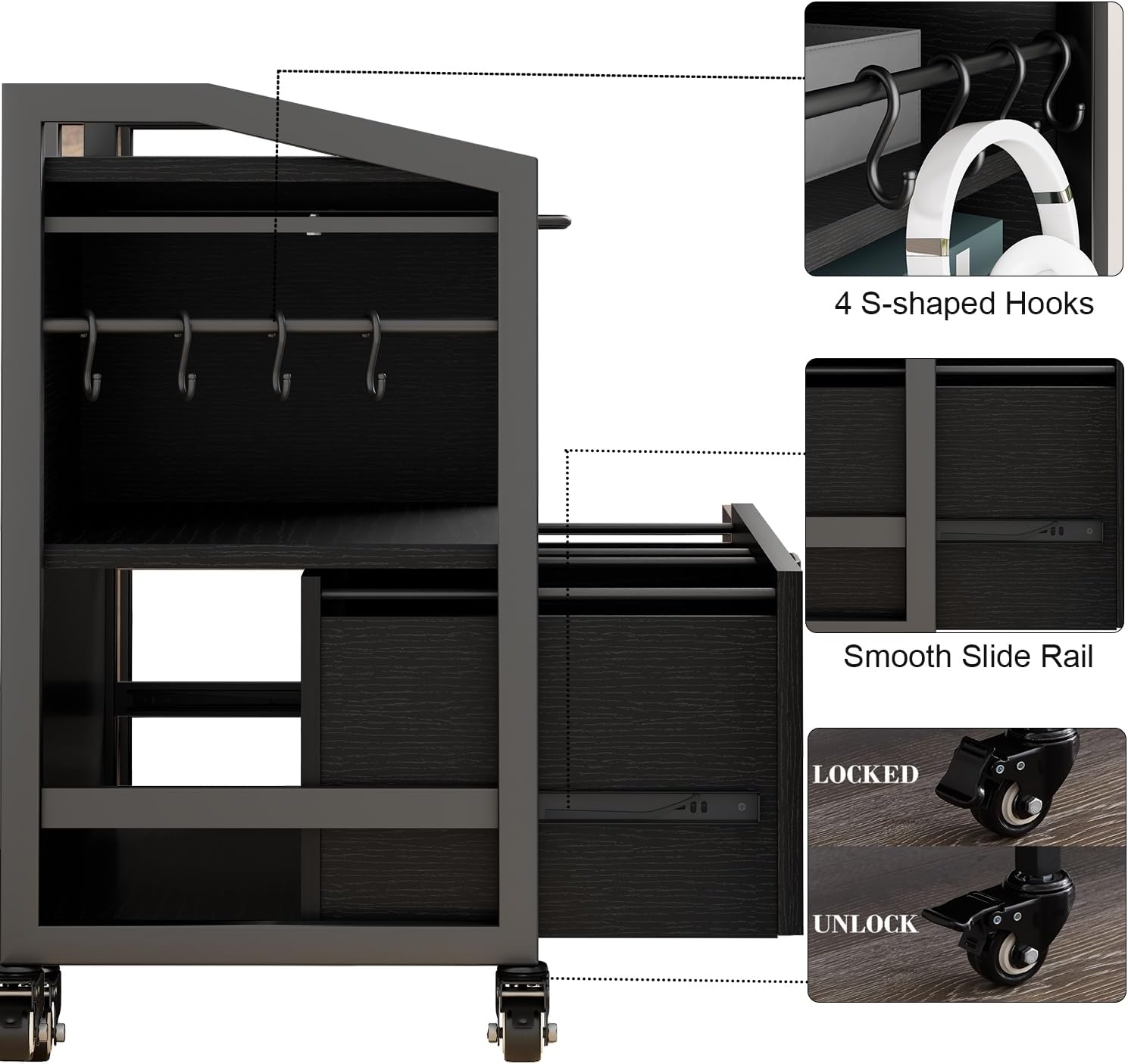 - All-in-One Storage Solution:Stay organized with 4 removable S-hooks for headphones, bags, or accessories. This filing cabinet organizer also features 2 open storage shelves for books, binders, or office essentials. The spacious 31.42”L × 15.7”W top surface holds printers, scanners, or décor, doubling as a printer stand with storage. With multiple compartments, it keeps documents and supplies neatly arranged for any home office filing cabinet setup.