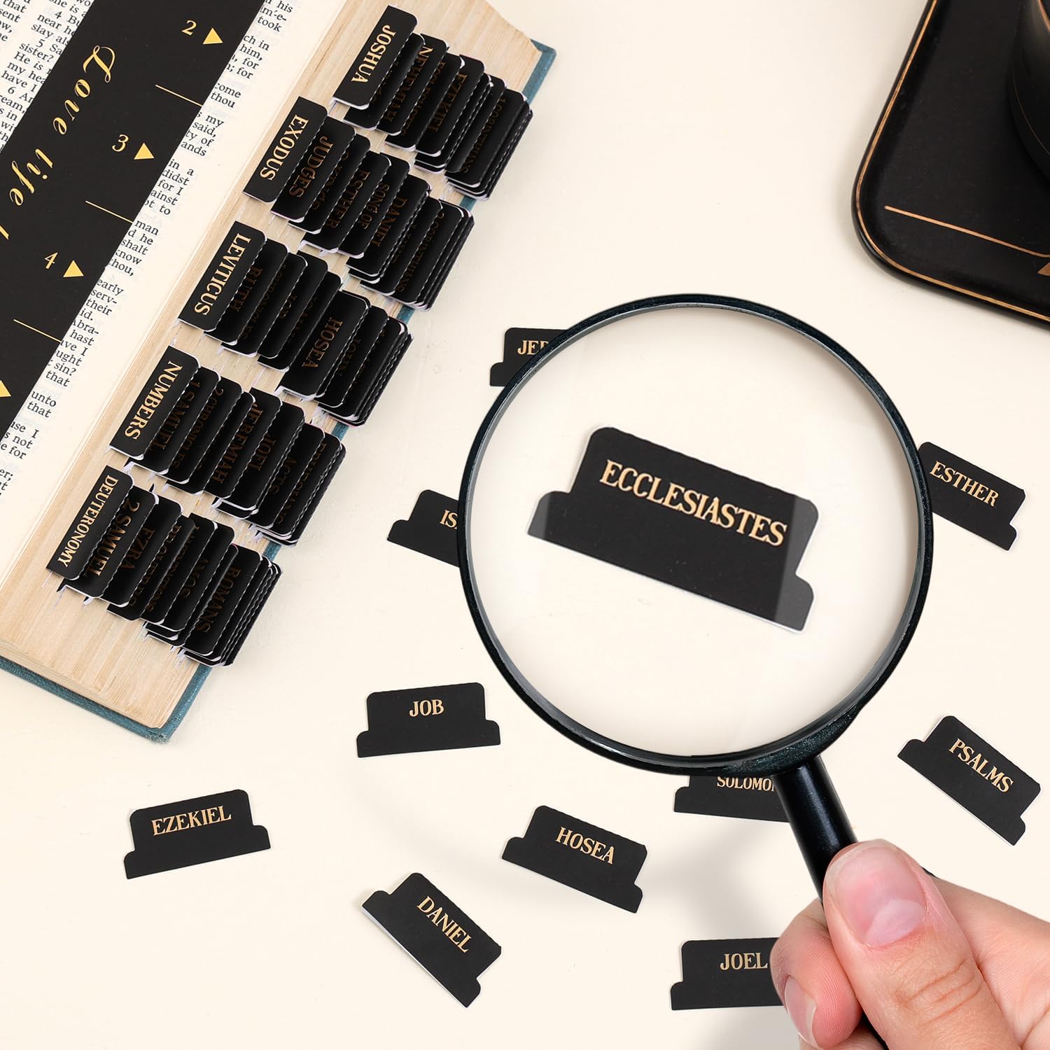 - Elegant Black & Gold Raised Foil Design: Experience unparalleled sophistication with our luxurious raised foil tabs. The rich black background paired with shimmering, elevated gold lettering creates a stunning visual contrast against your Bible's pages. This elegant design offers a beautiful and durable way to highlight the sacred text.