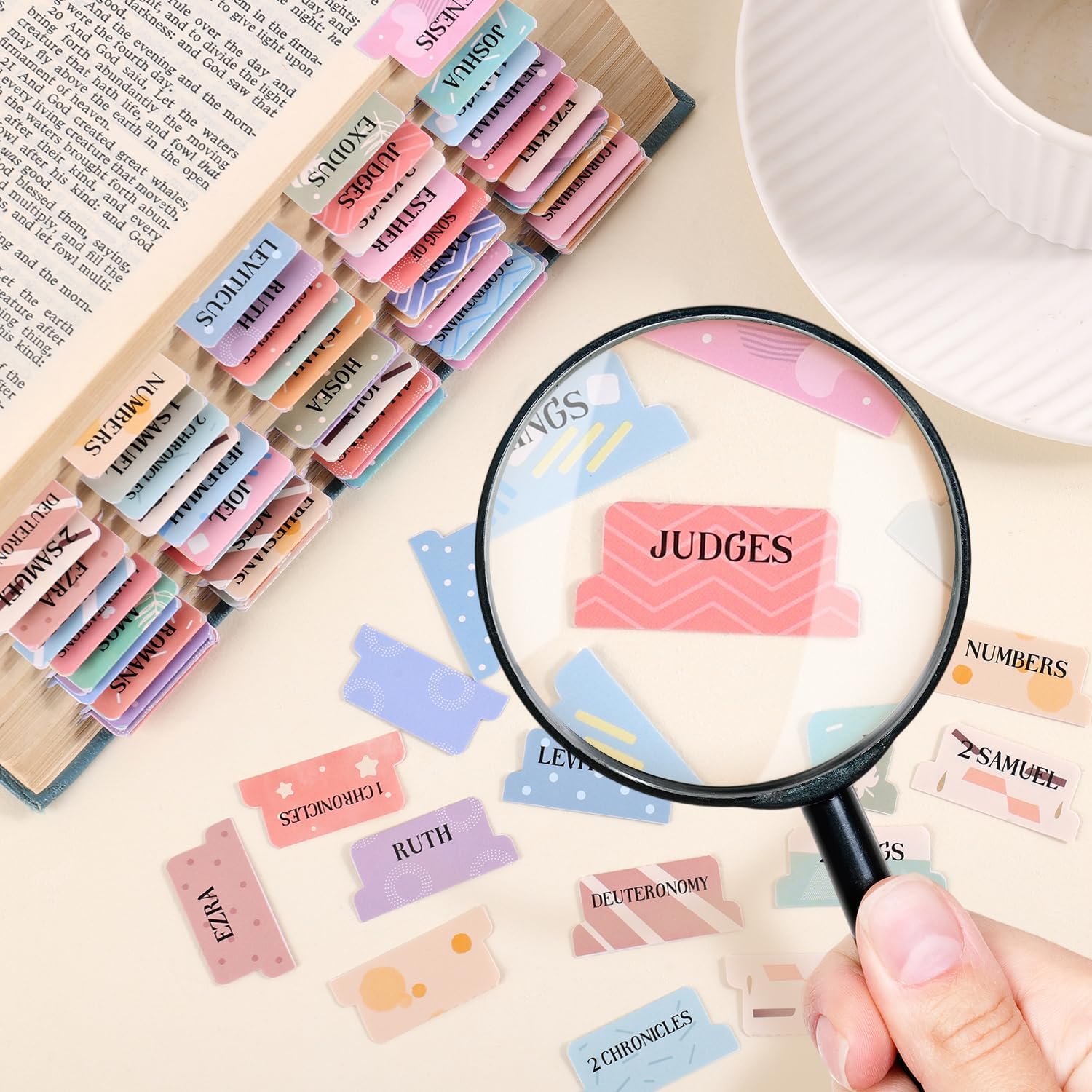 - Perfectly Organized Scripture Navigation: Effortlessly find your favorite passages with our complete set of 66 pre-printed tabs: 39 for the Old Testament and 27 for the New Testament. This ultimate Bible indexing system eliminates flipping through pages, making your daily study, sermon preparation, or group discussion smoother and more focused than ever before.