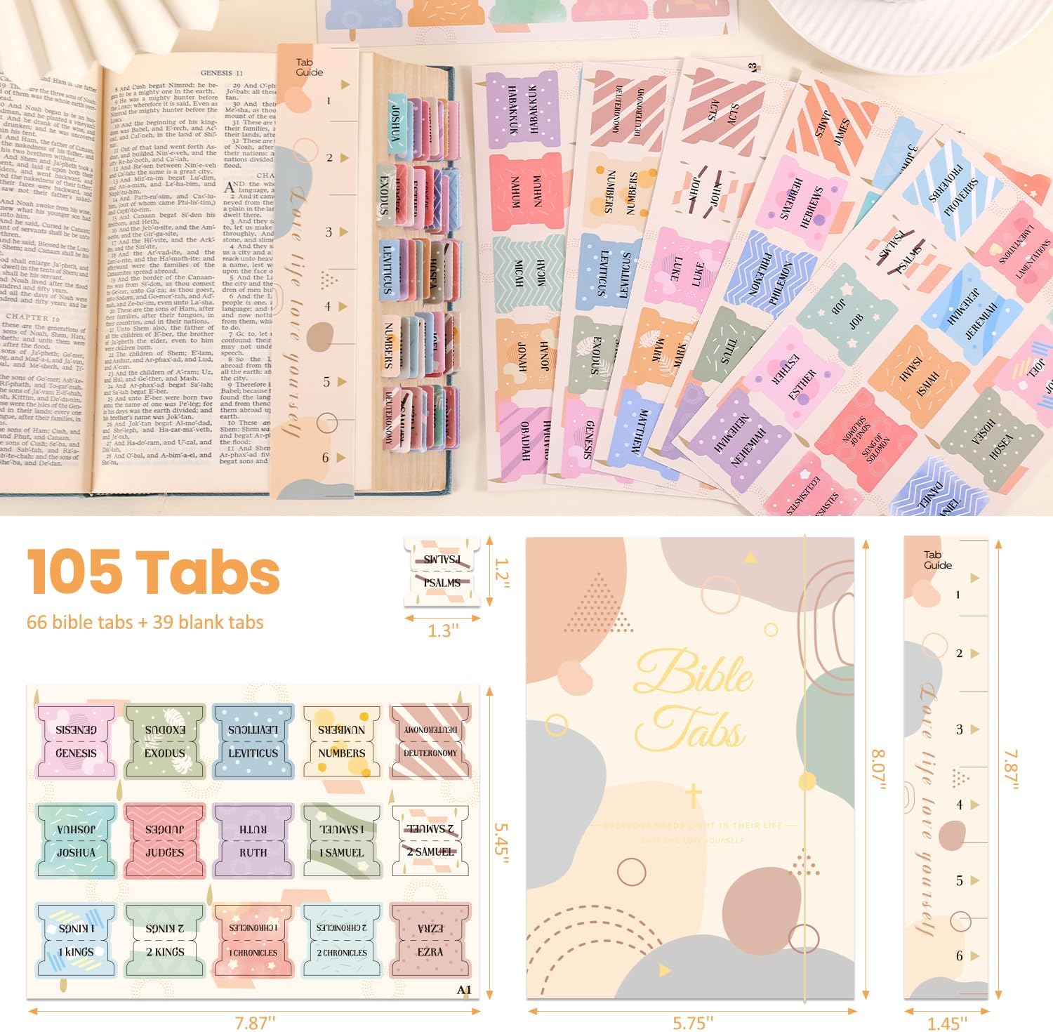 Bible Tabs for Women, 66 Large Print Laminated Bible Chapters Index Tabs and 39 Blank Dividers Sticky Labels, Cute Beauty Geometry Bible Study Supplies, Journaling Accessories, Christian Gifts for Men
