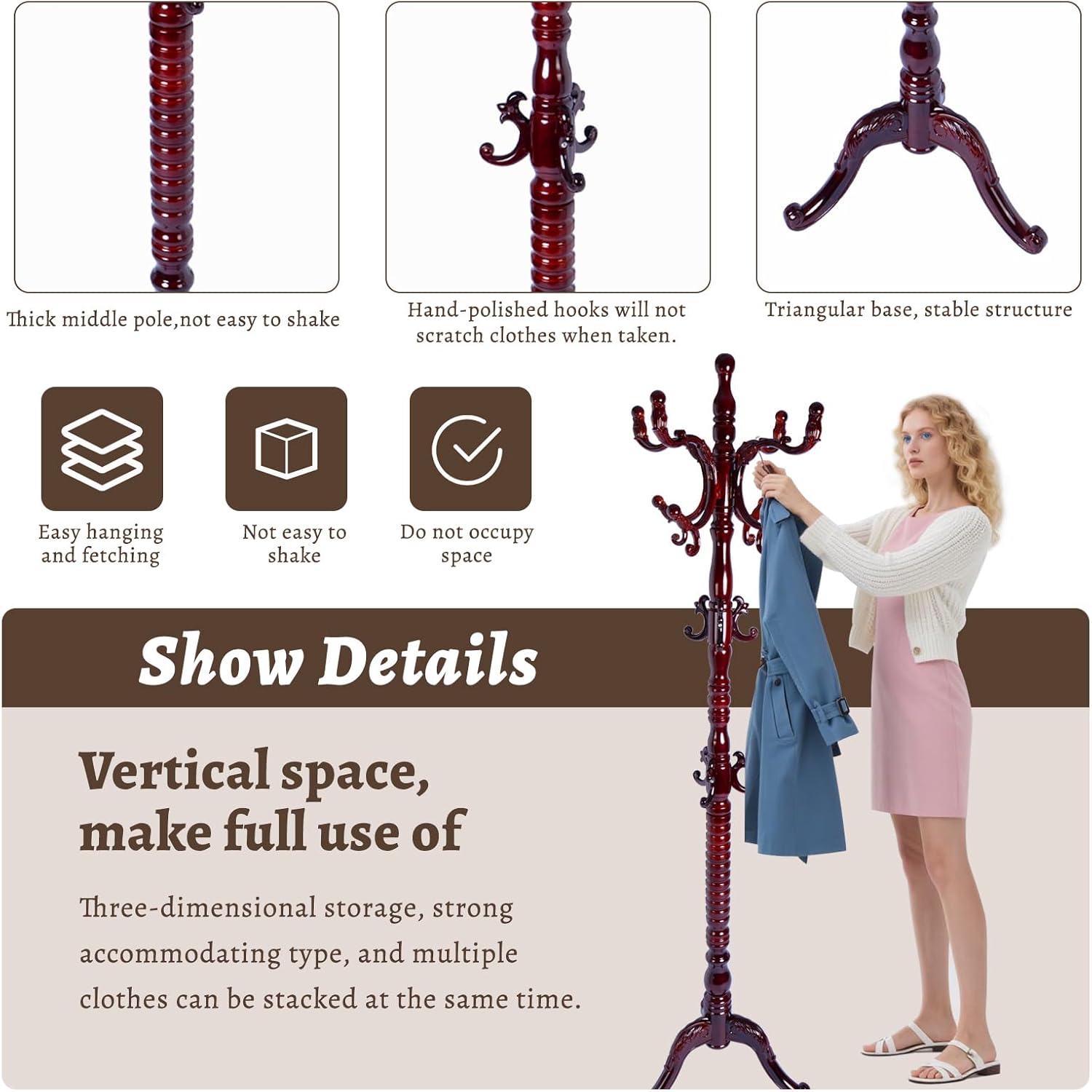 - Multiple Stylish Options to Match Your Home Decor: Our Wooden Coat Rack comes in a variety of designs, ensuring there's a perfect style for any room. Whether you're looking for a freestanding coat rack, a coat tree stand, or an entryway coat rack, we offer versatile choices that seamlessly fit into your living room, bedroom, hallway, or entryway.